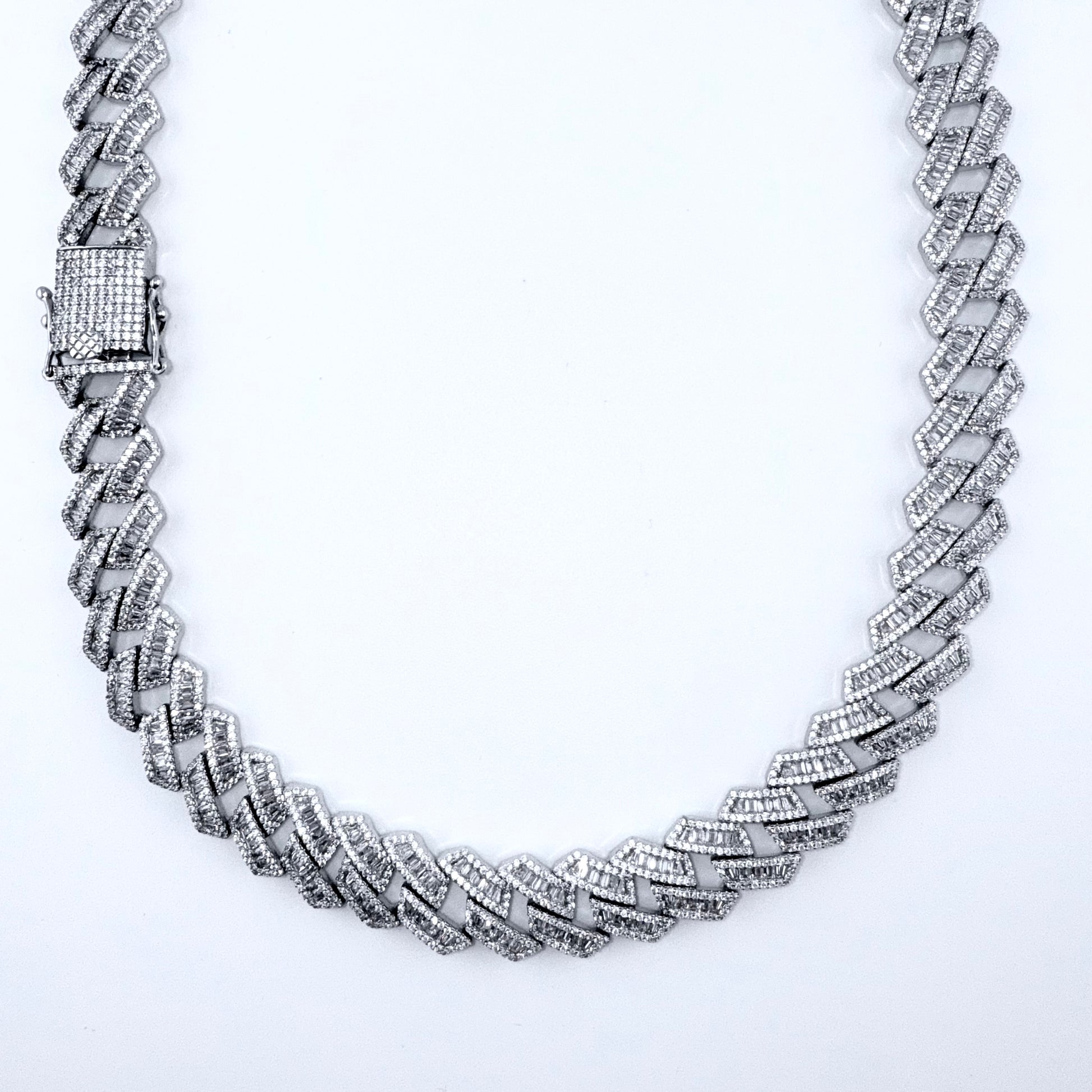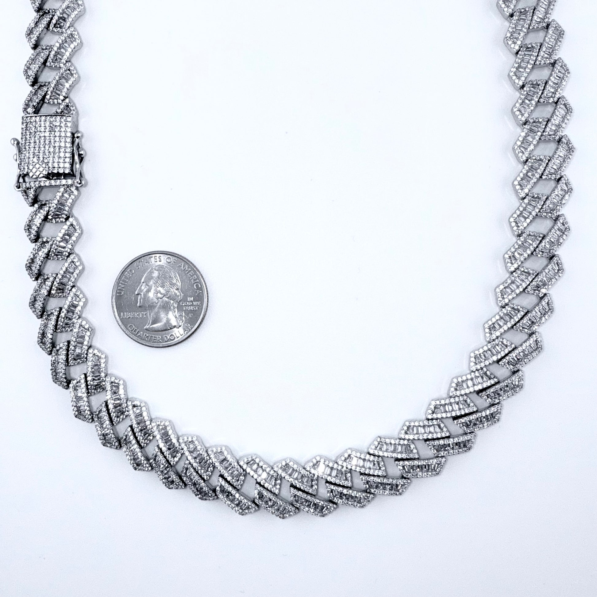 925 Sterling Silver Chain Necklace Iced Out- 13mm