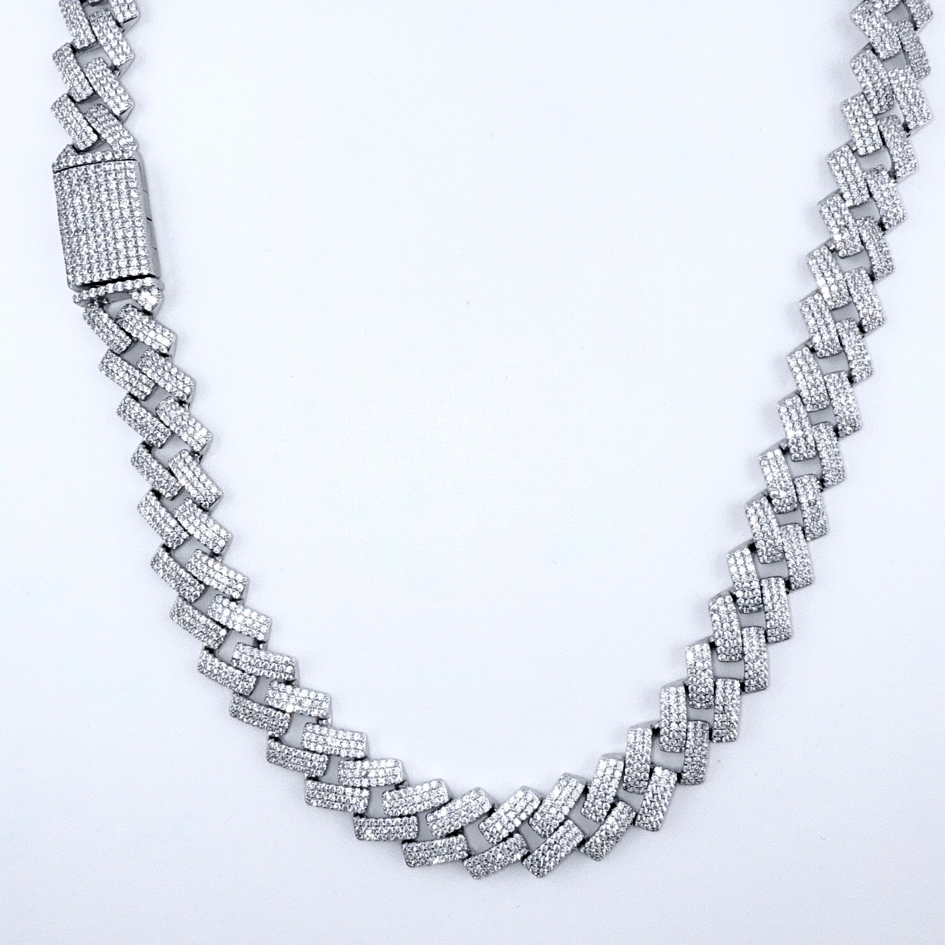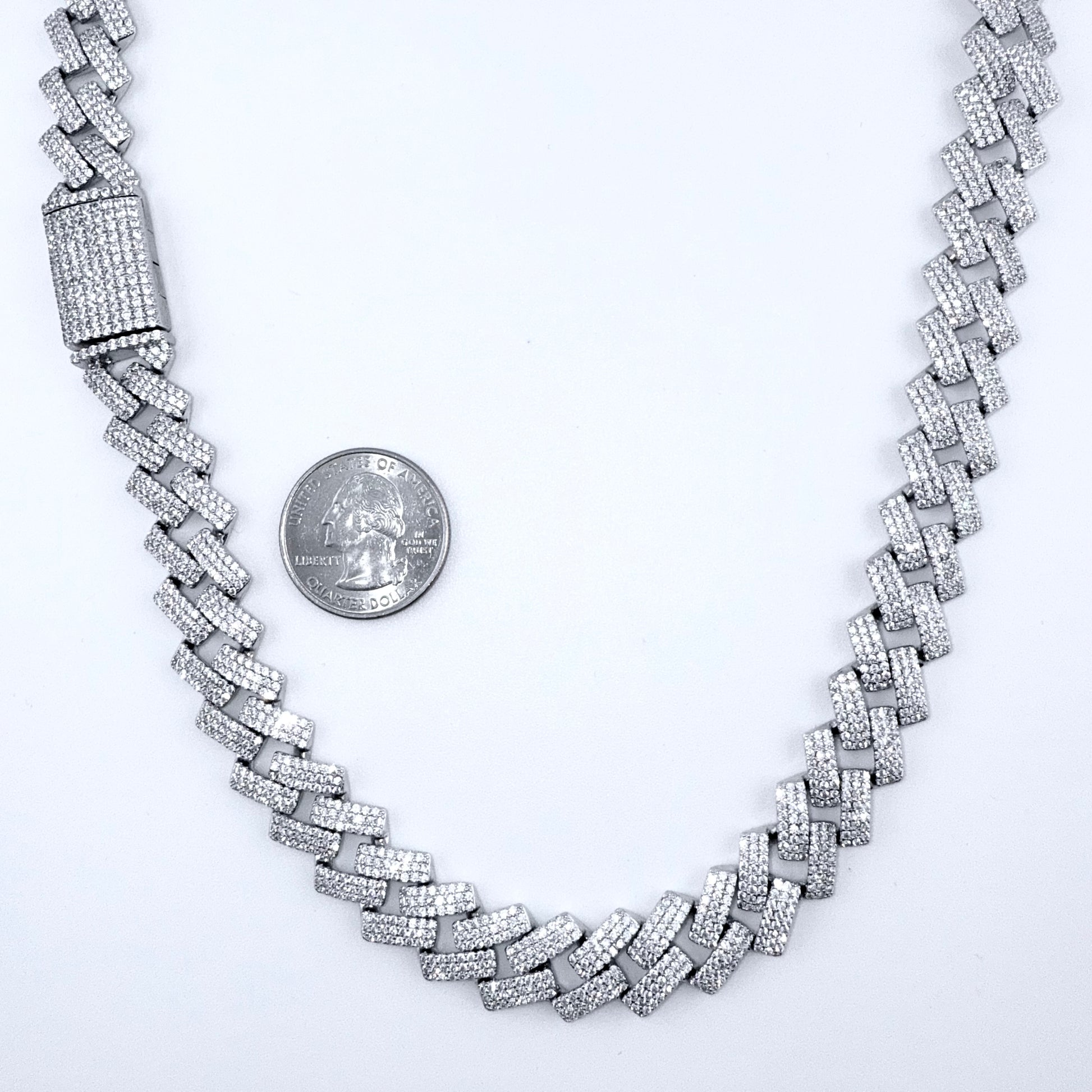 925 Sterling Silver Chain Necklace Iced Out- 14mm