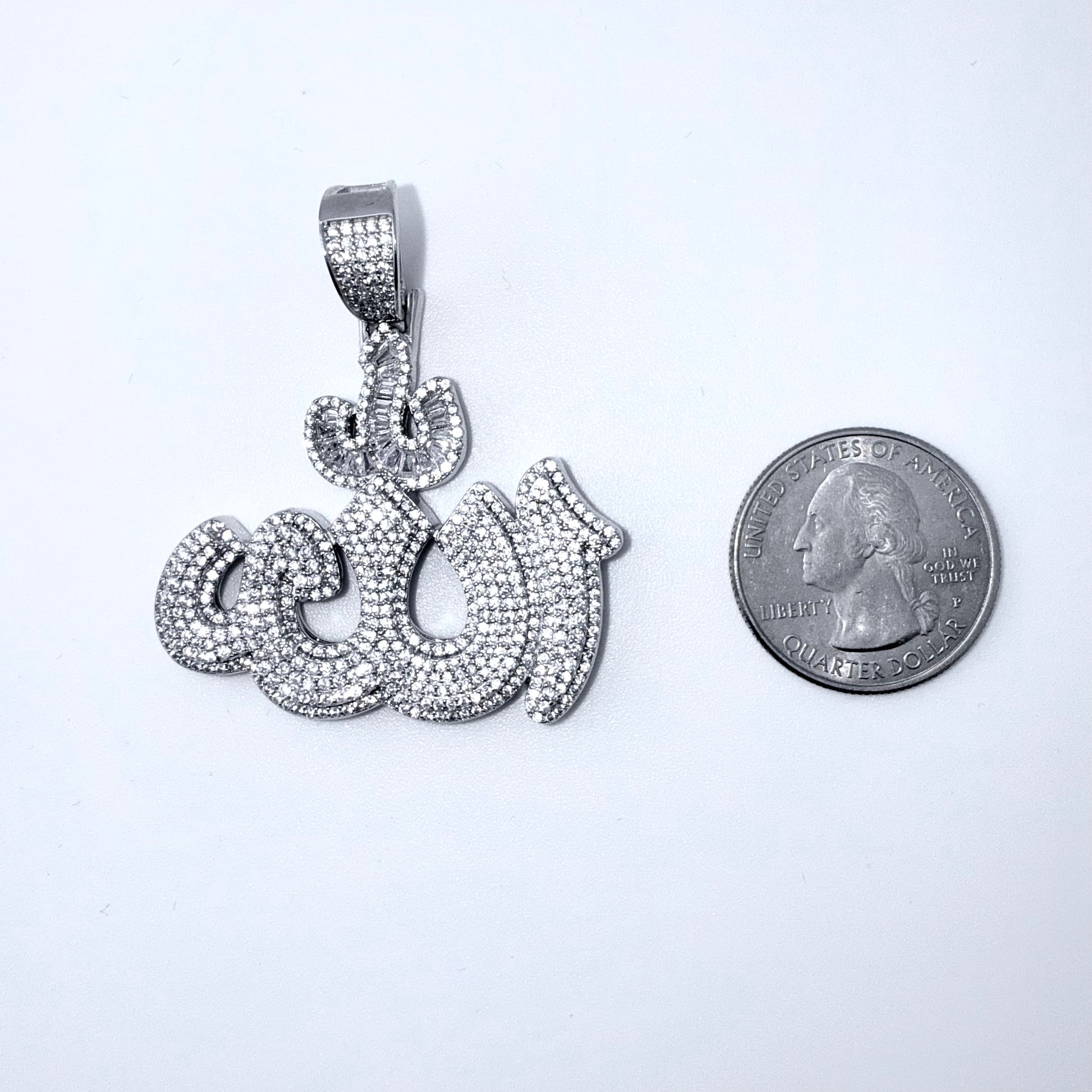 Real 925 Sterling Silver CZ Allah Pendant