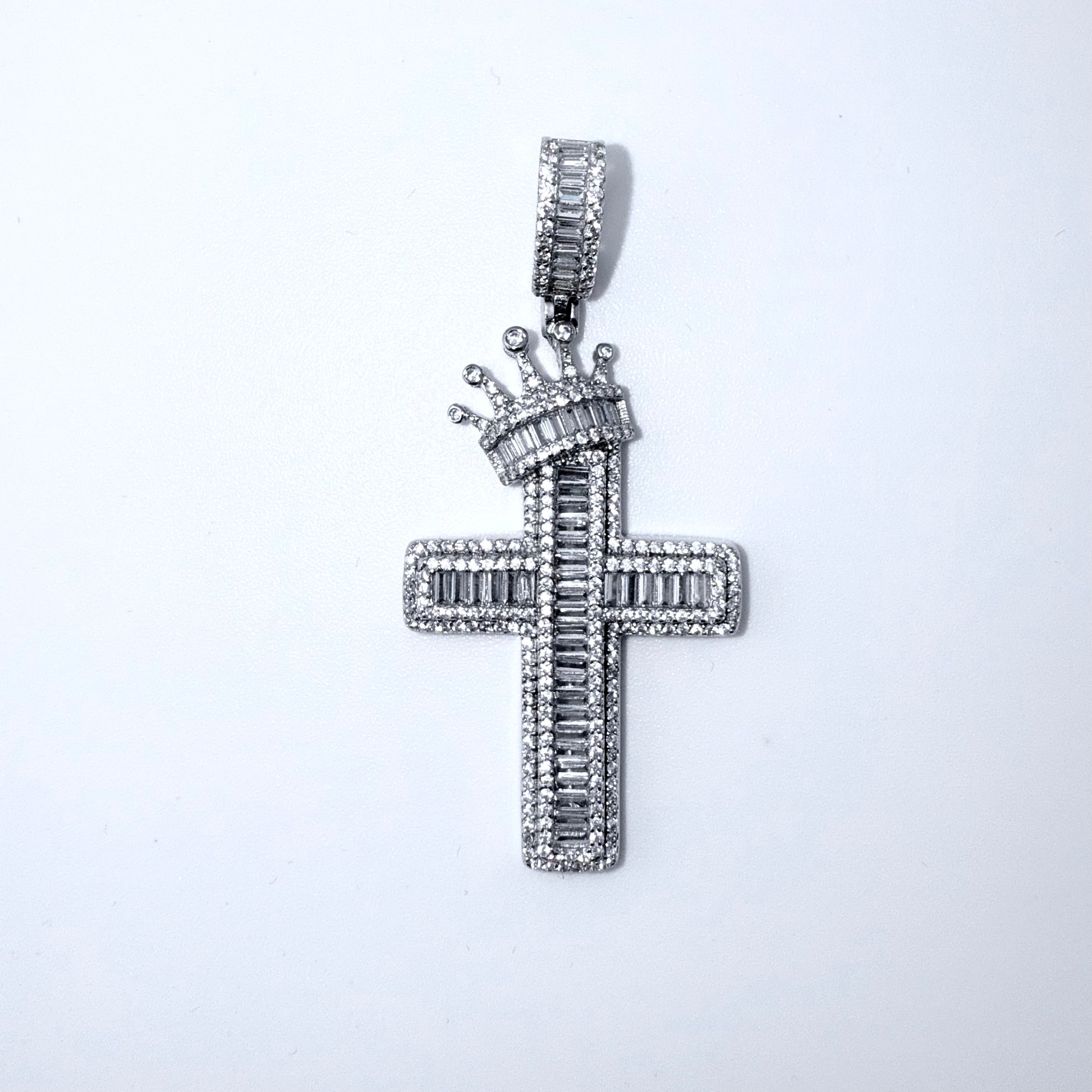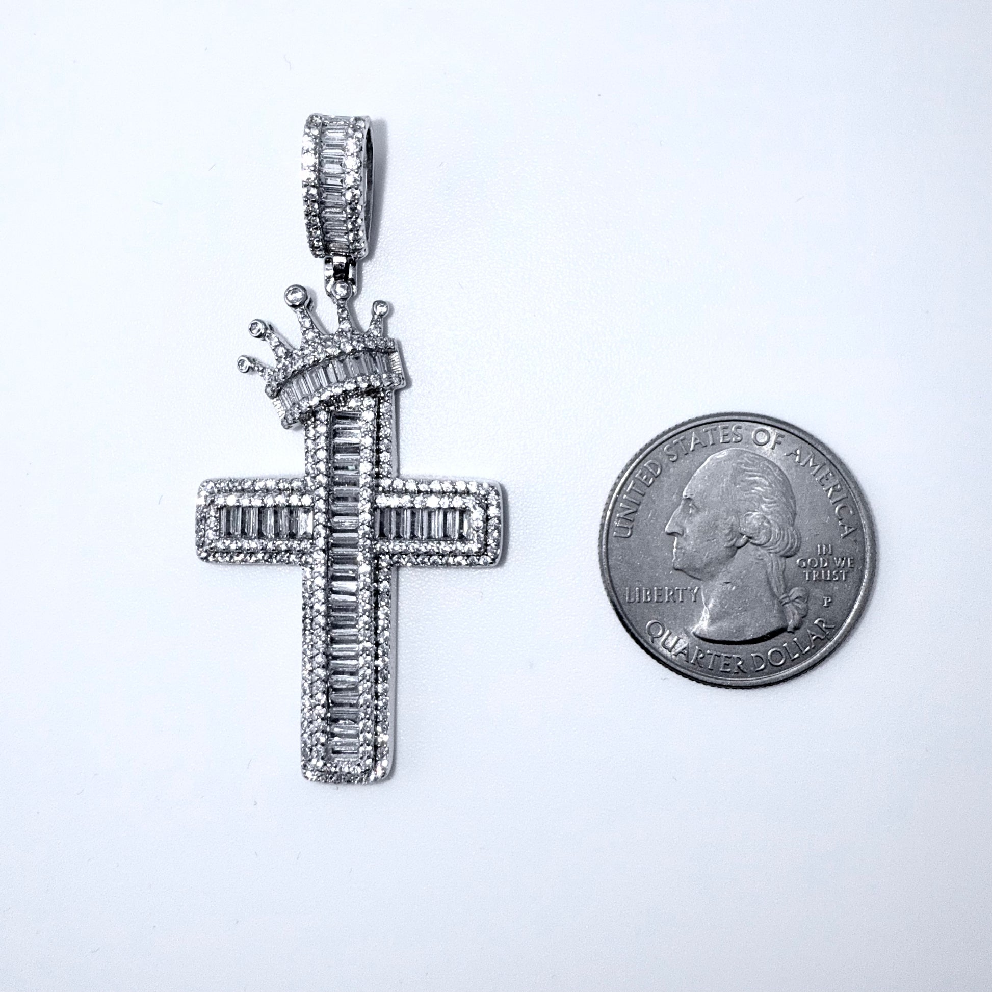 Real 925 Sterling Silver CZ Crown Cross Pendant