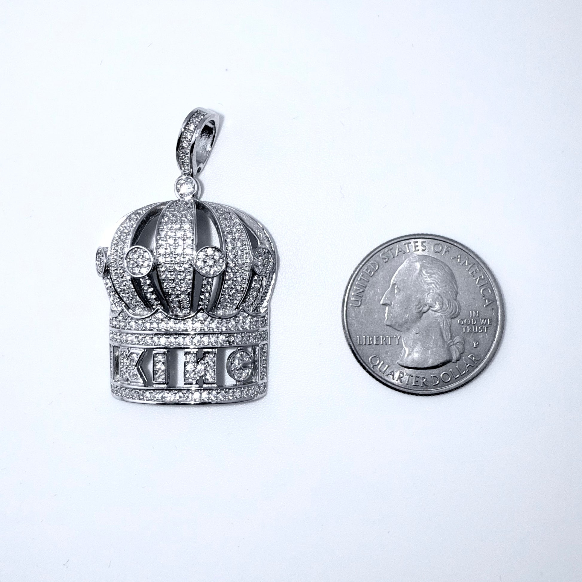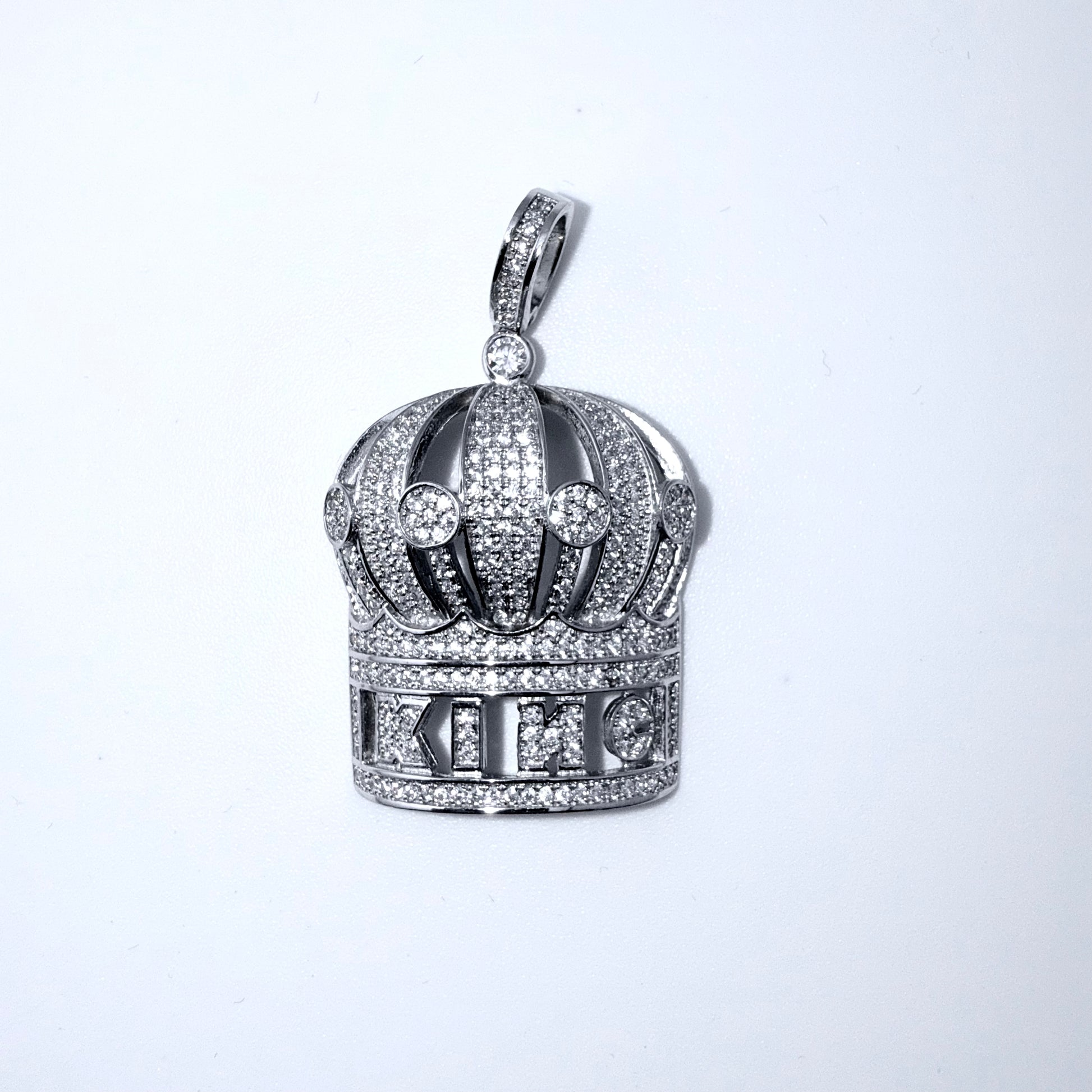 Real 925 Sterling Silver CZ Crown King Pendant