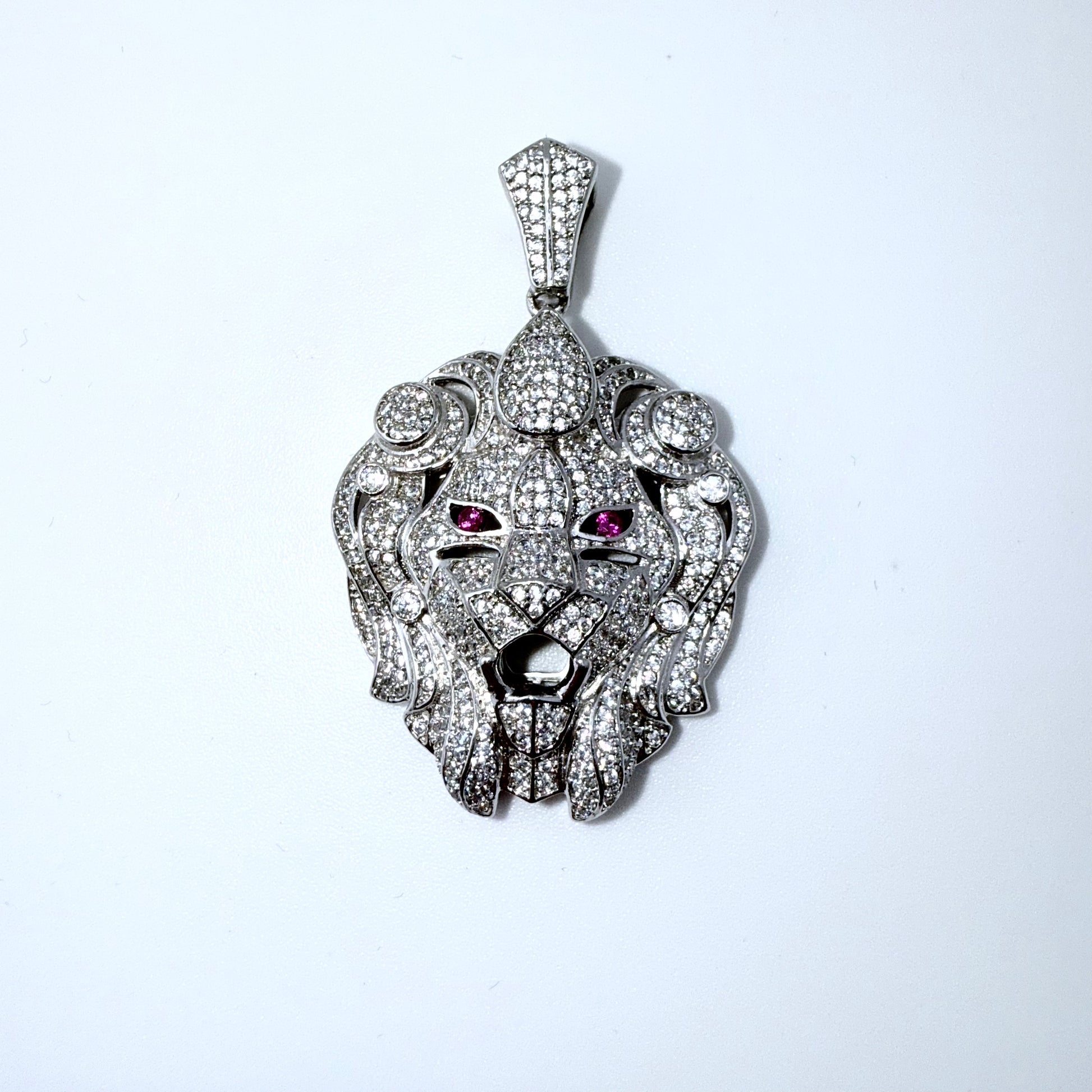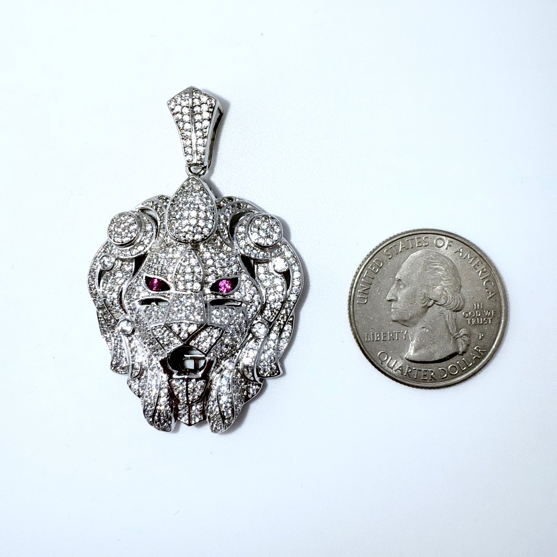 Real 925 Sterling Silver CZ Lion Head Pendant