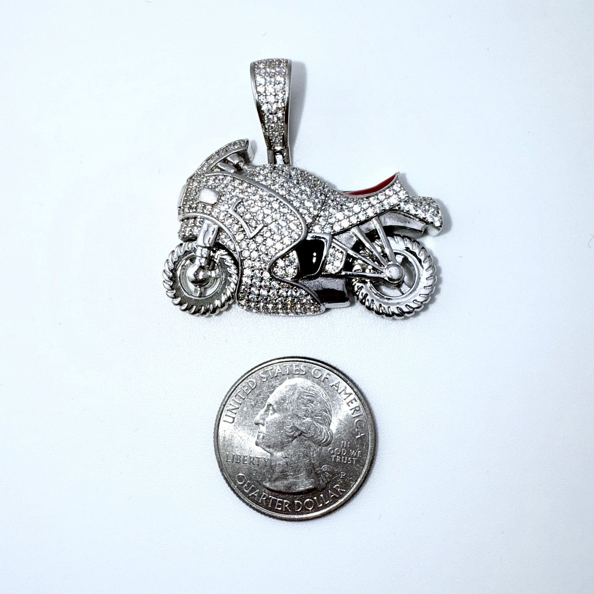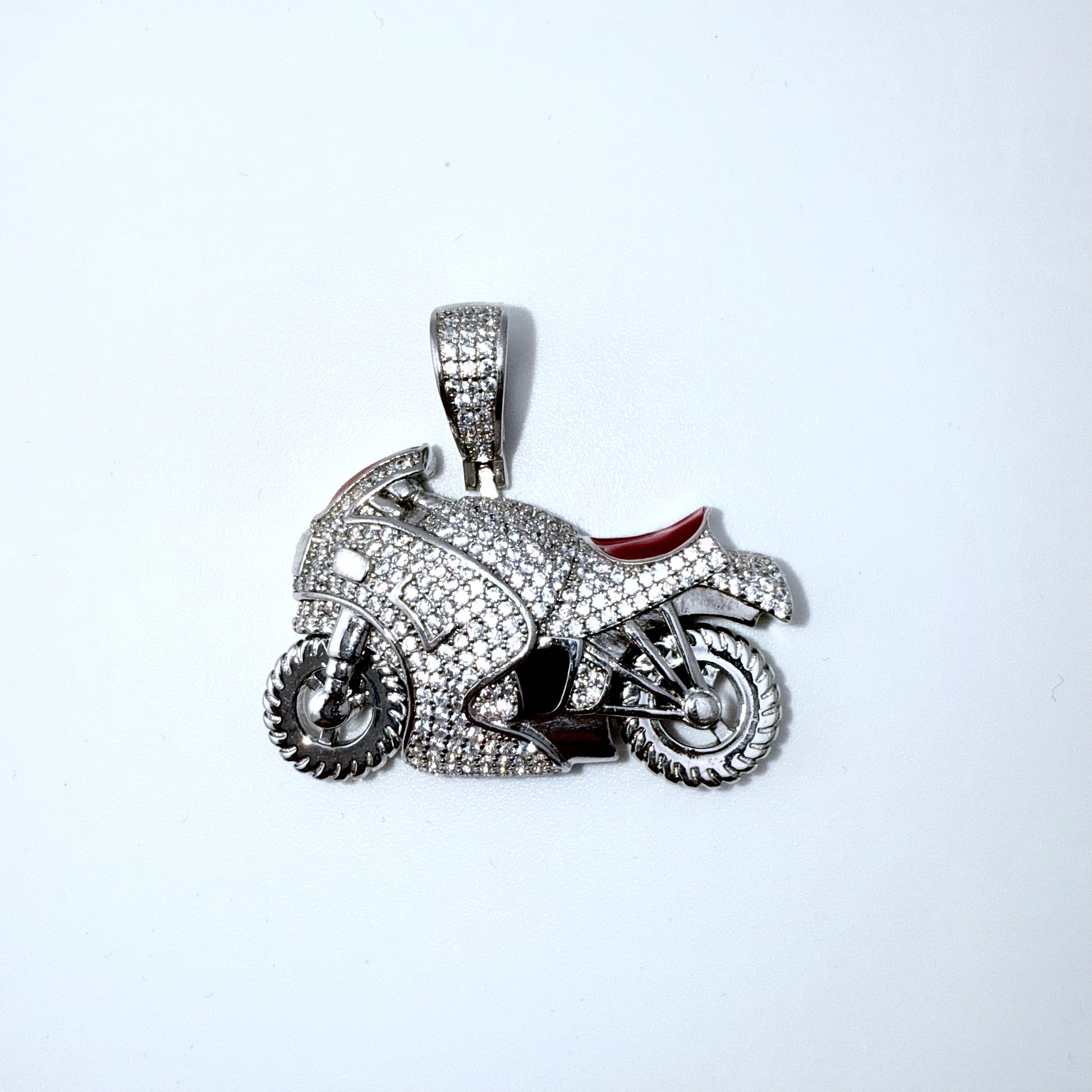Real 925 Sterling Silver CZ Motorcycle Pendant