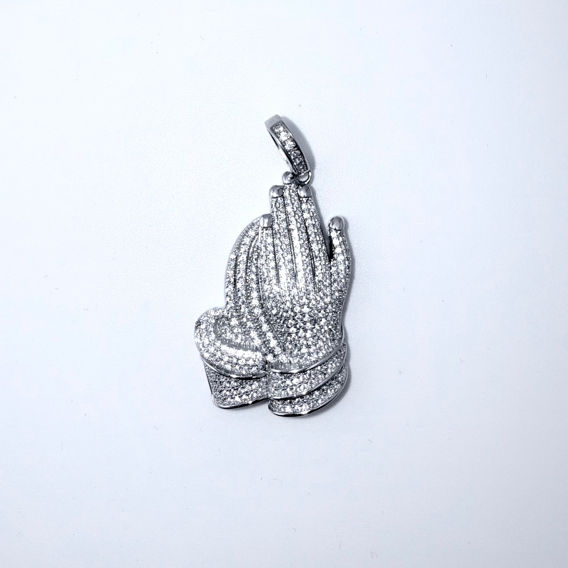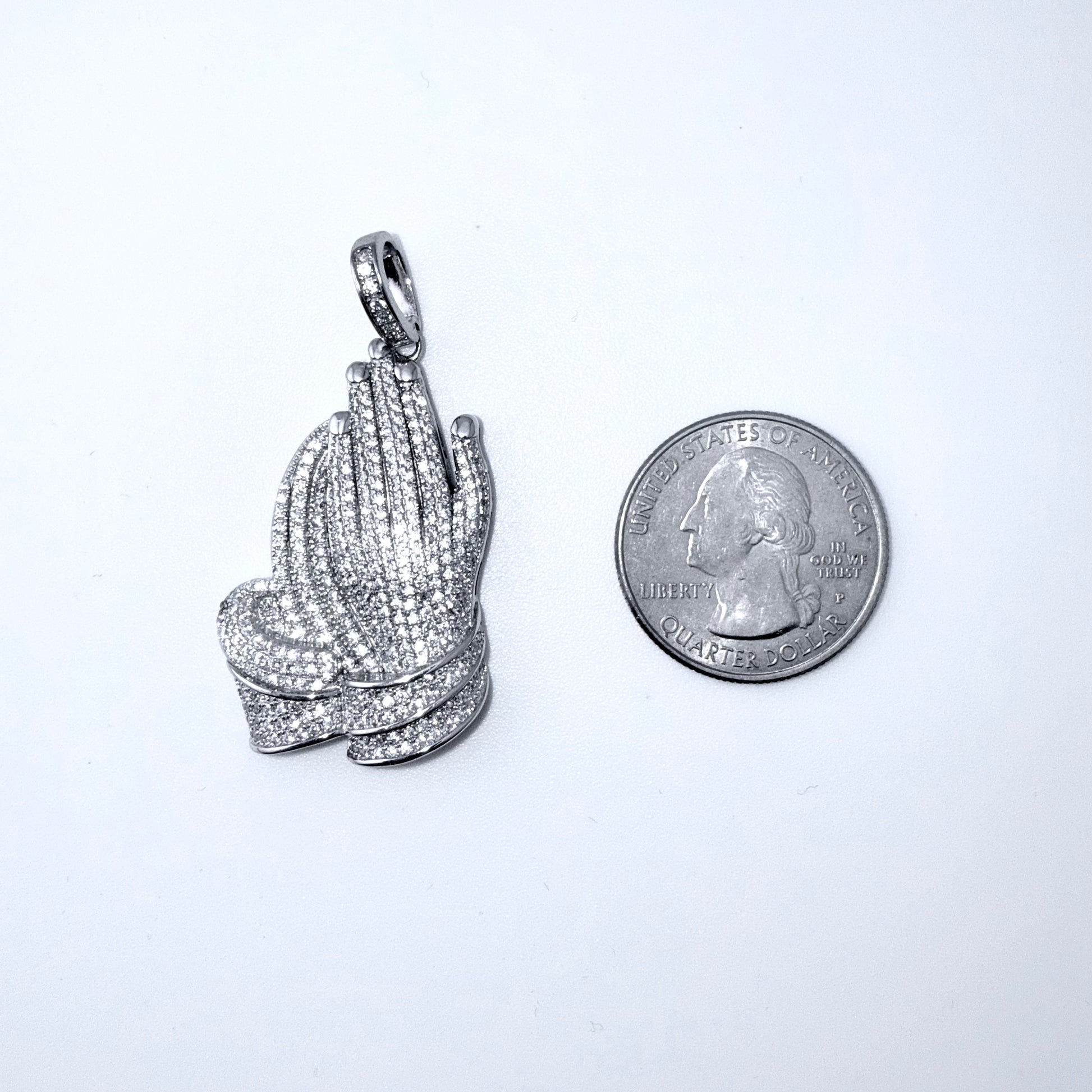 Real 925 Sterling Silver CZ Prayer Hand Pendant